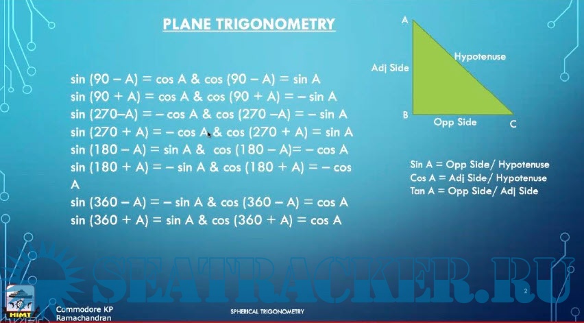 Year: 20xx Language: english Author: K.P. Ramachandran Publisher: Hindustan Institute of Maritime Training (HIMT) Format: PDF Quality: eBook Pages count: 17 Description: Spherical Trigonometry Notes.