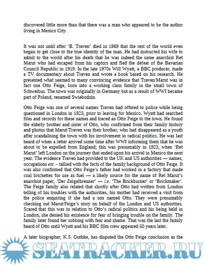 Additional info: Originally written in English in 1923 or 1924, translated into German by B.Traven himself and first published as Das Totenschiff. Die Geschichte eines amerikanischen Seemanns in Berlin, 1926.