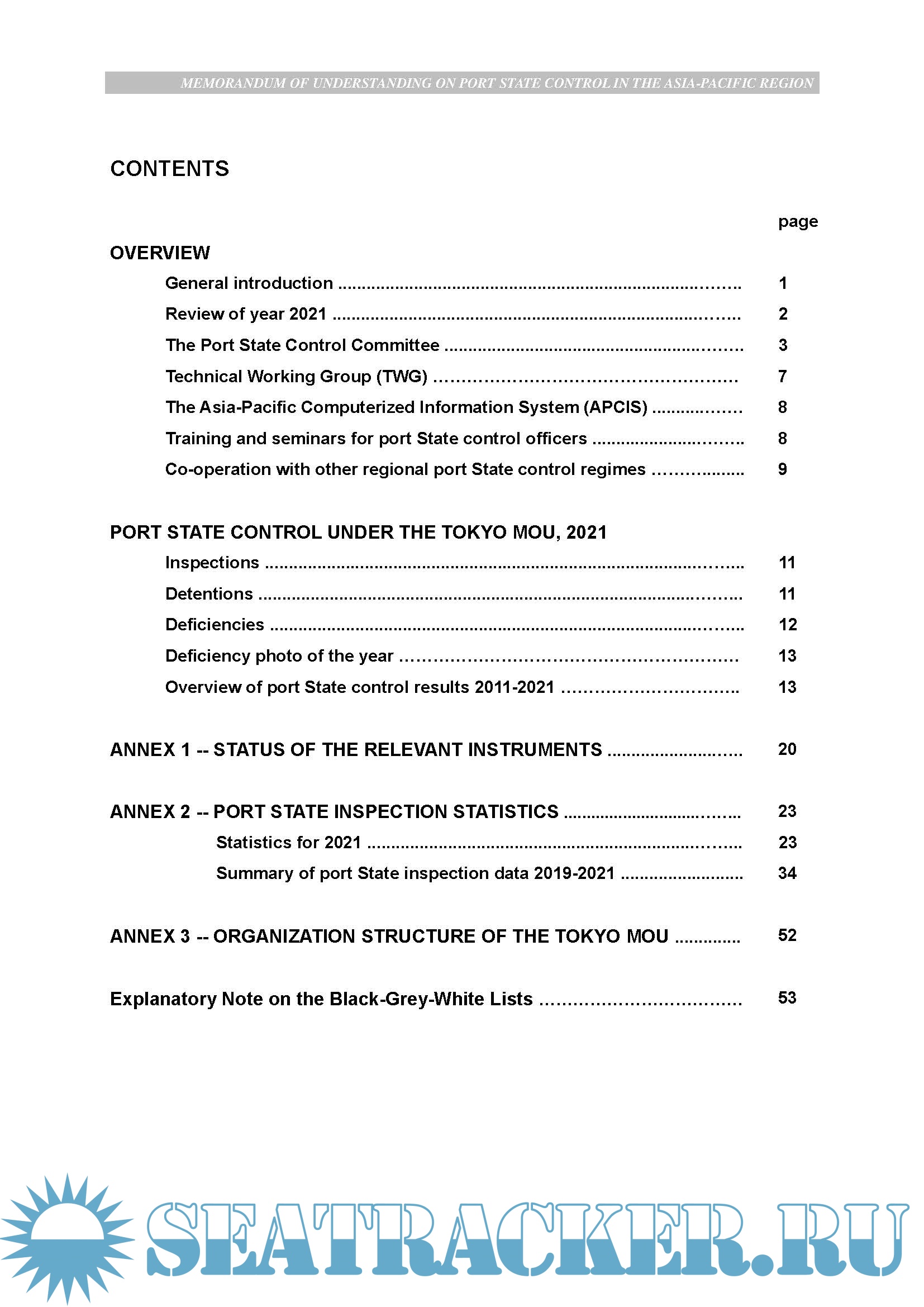 State Control in the Asia-Pacific Region (Tokyo MOU). This annual report is the