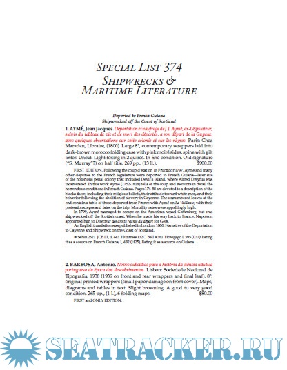 Description: Special List 374: ShipWrecks and Maritime Literature.