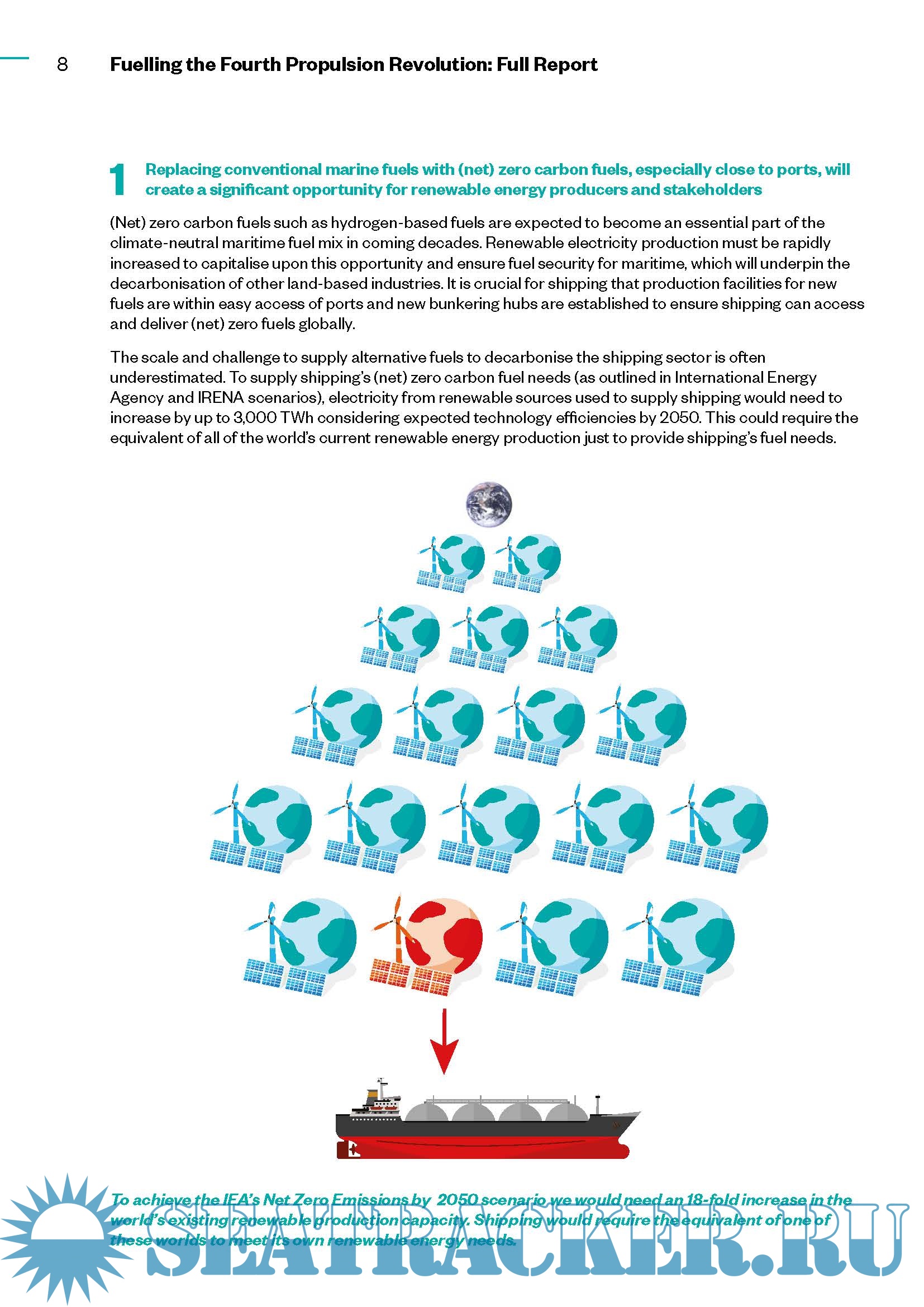 Year: 2022 Language: english Author: ICS Genre: Research papers Format: PDF Quality: eBook Pages count: 125 Description: This research has looked to identify the amount of electricity needed to produce (net) zero carbon fuels for maritime use as part of the wider global energy transition. For shipping’s (net) zero carbon fuel needs, electricity from renewable sources used to supply shipping would need to increase by up to 3,000 TWh. This would require the equivalent of all of the world’s current renewable energy production just to provide shipping’s fuel needs.