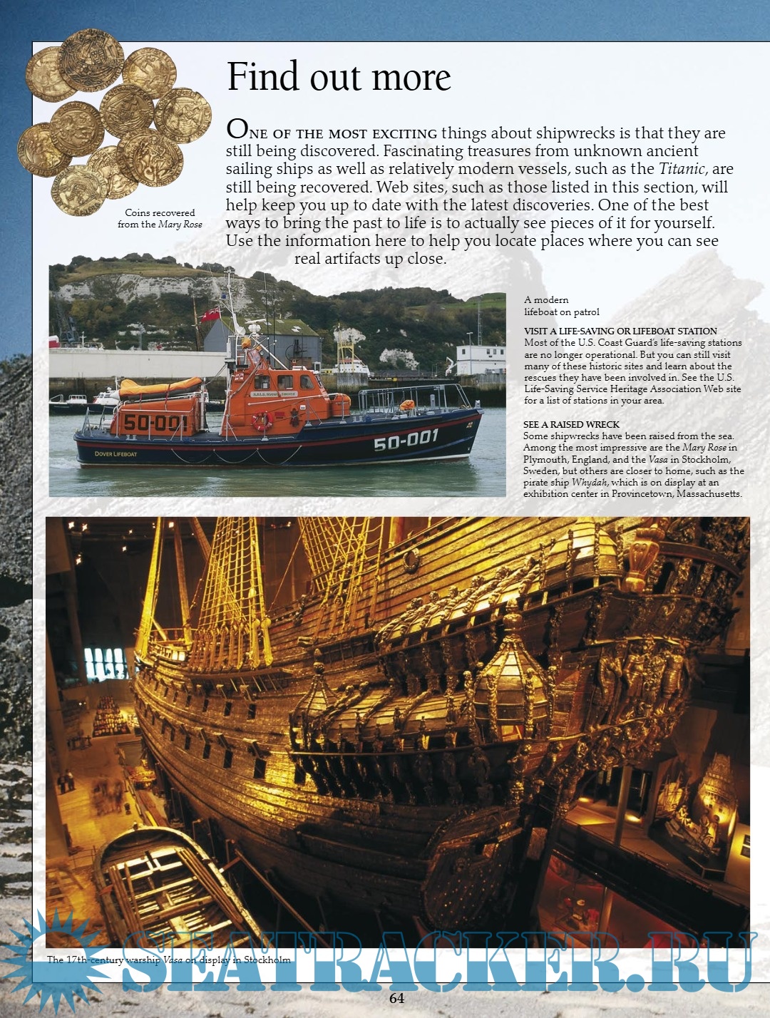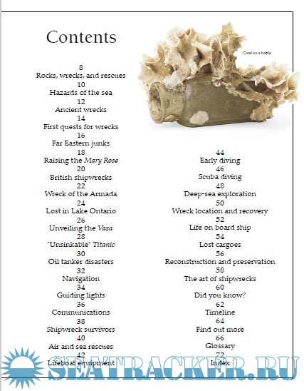 Description: Describes the history of shipwrecks, famous wrecks, causes, navigation and rescue techniques, and underwater archeology and the exploration of wrecks.