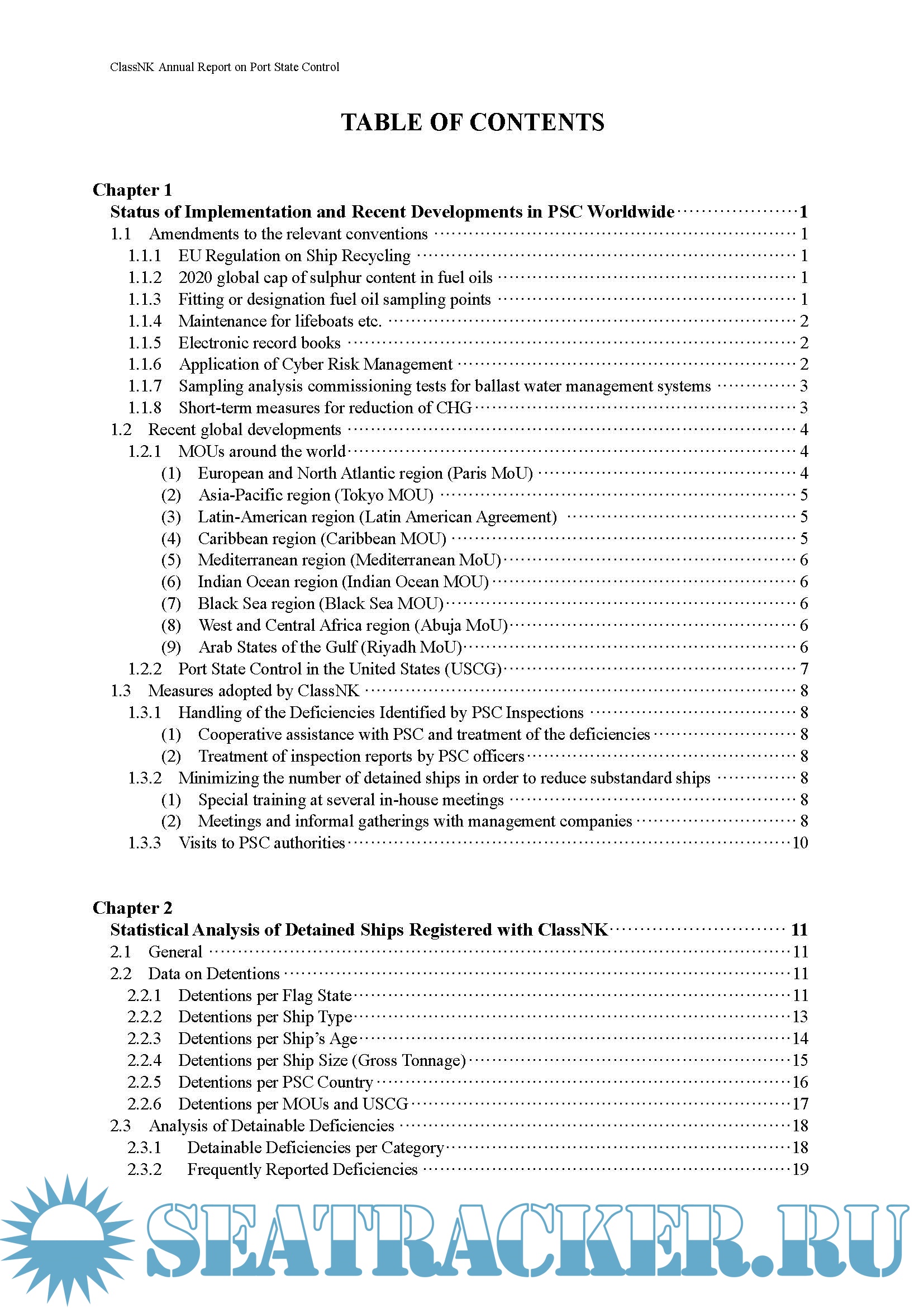 Description: This Annual Report on Port State Control (PSC) summarizes deficiencies identified during PSCinspections carried out in various countries around the world. This report is prepared with the objective ofbuilding awareness of the present state of PSC and thereby improving future onboard maintenance andinspections as well as Safety Management Systems.