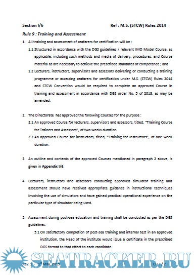Description: Training, Examination and Assessment Programme (TEAP) - Part A for Merchant Shipping (Standards of Training, Certification and Watchkeeping for Seafarers) Rules, 2014.