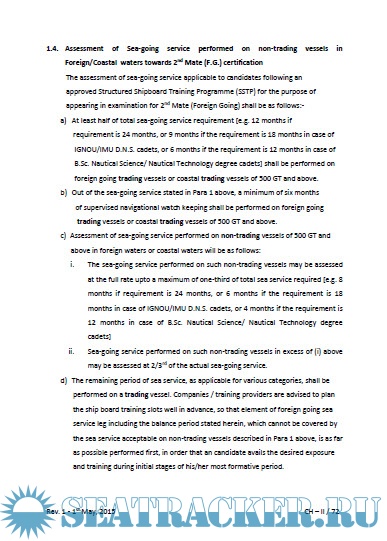 The TEAP describes the procedures for certification of the various ranks of seafarers, and provides details such as eligibility criteria, sea-going service requirements, training requirements, training courses and their syllabii, examination and assessment criteria, and other relevant information.