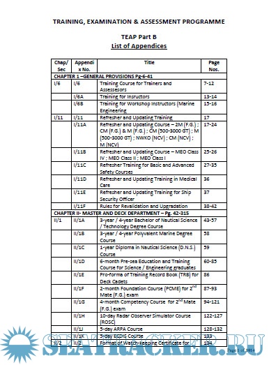 Description: Training, Examination and Assessment Programme (TEAP) - Part B for Merchant Shipping (Standards of Training, Certification and Watchkeeping for Seafarers) Rules, 2014.