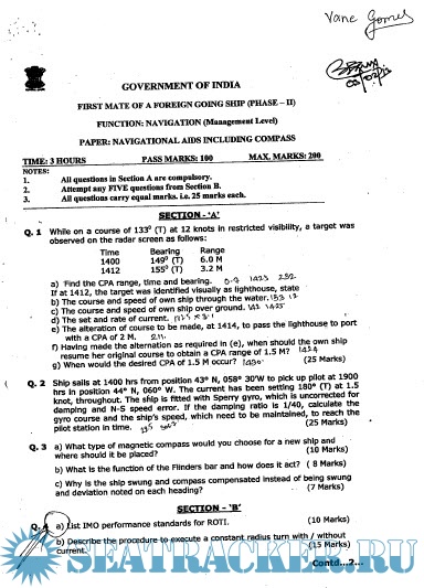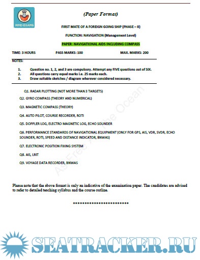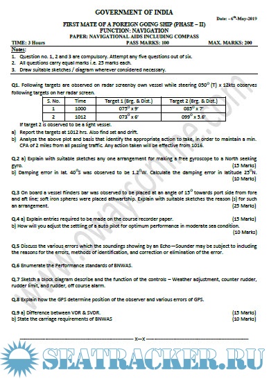 Question paper set for Mercantile Marine Department (MMD), India Exams for Phase II - Chief Mate (F.G.).