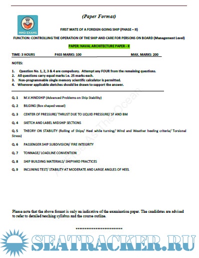 Question paper set for Mercantile Marine Department (MMD), India Exams for Phase II - Chief Mate (F.G.).