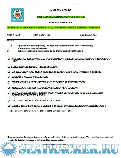 Question paper set for Mercantile Marine Department (MMD), India Exams for Phase II - Chief Mate (F.G.).