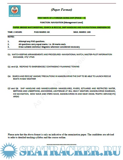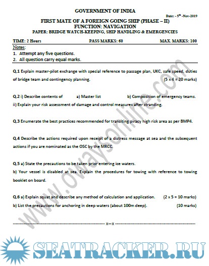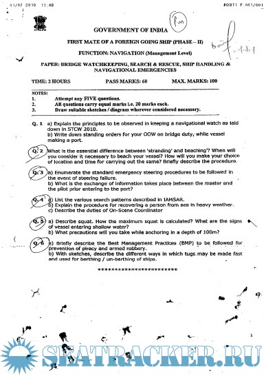 Question Paper Set for Phase II (Chief Mate F.G.) Mercantile Marine Department (MMD), India…