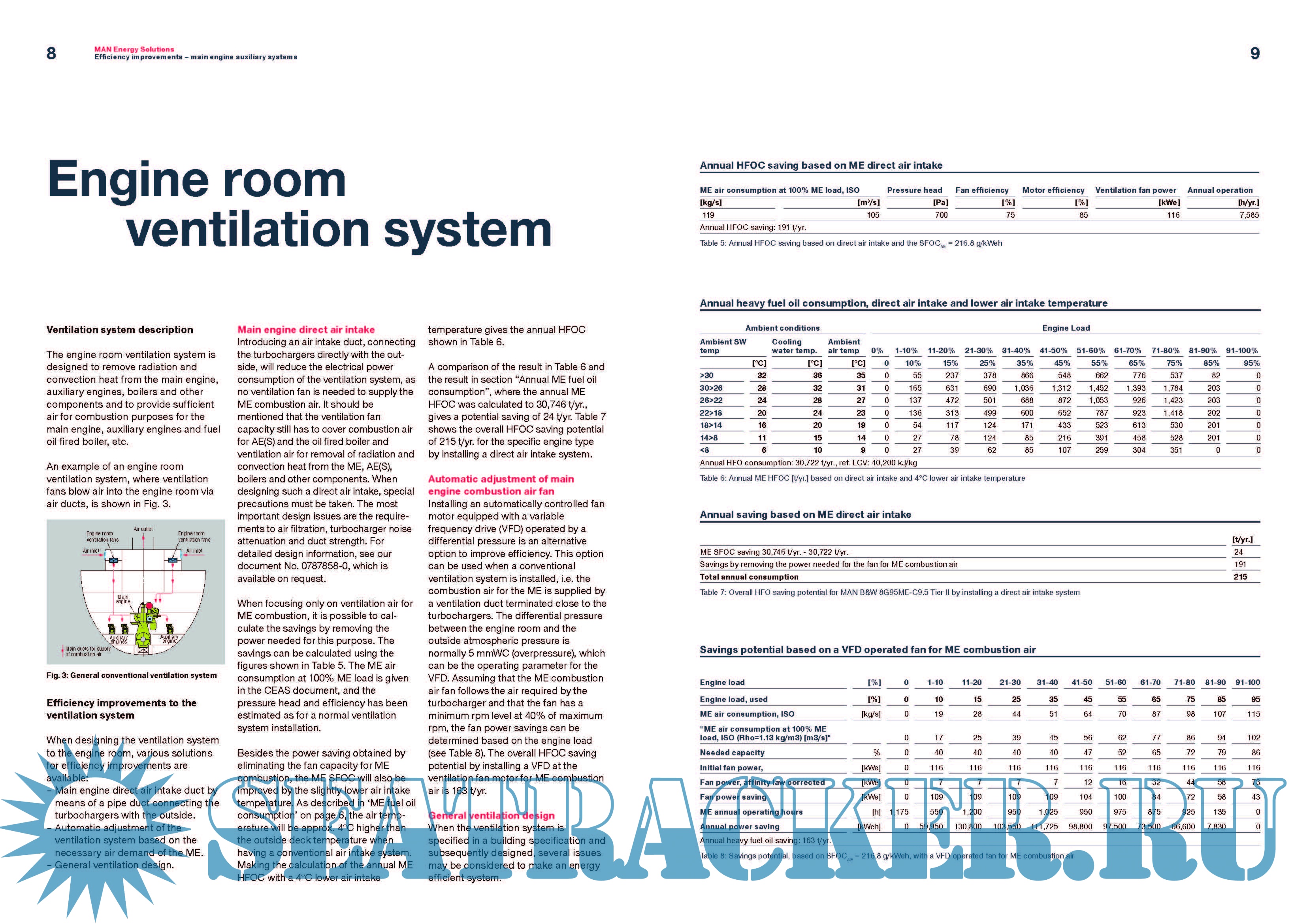 example pumps, fans, etc., serving the main engine, but also efficiency improvements related directly