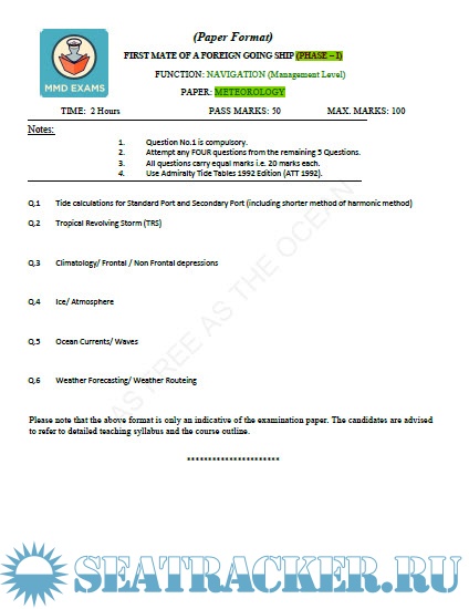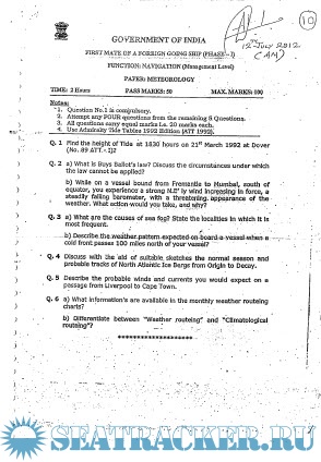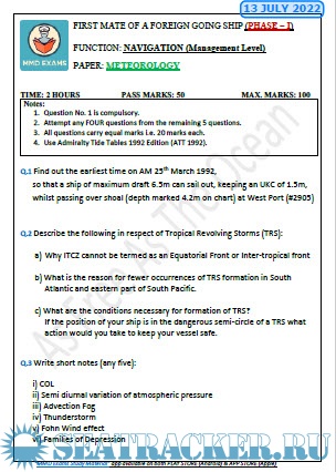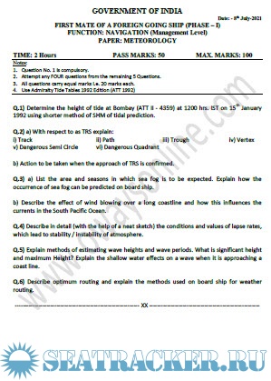 Question Paper Set for Meteorology (July 2022) for Phase I (Chief Mate F.G.) Mercantile Marine Department (MMD), India Examinations