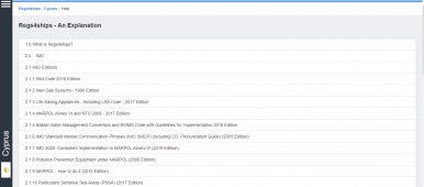 Description: Regs4ships is a maritime compliance tool. It takes legislation and guidance from a number of international and national sources, providing this in an indexed, easy to navigate source. Where supporting information is available to better support understanding and compliance with the international and Flag State requirements.