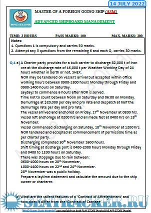 Question Paper Set for (ASM) Advanced Ship Management (July 2022) for Master's Examinations, Mercantile Marine Department (MMD), India