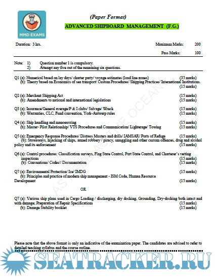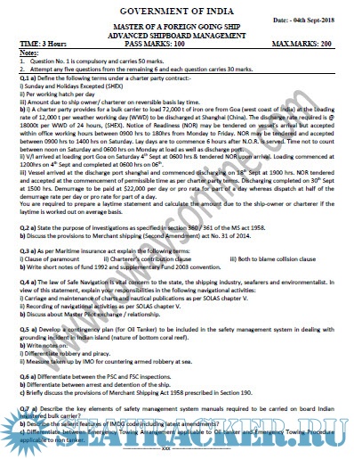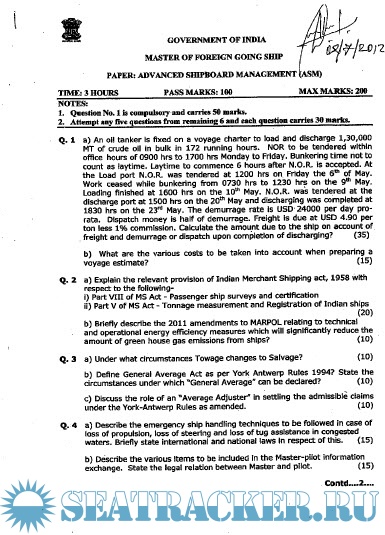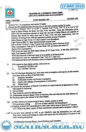 Question Paper Set for Advanced Ship Management (ASM) Mercantile Marine Department (MMD), India…