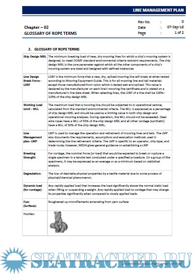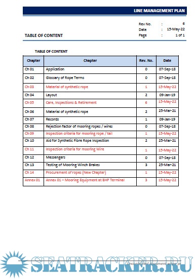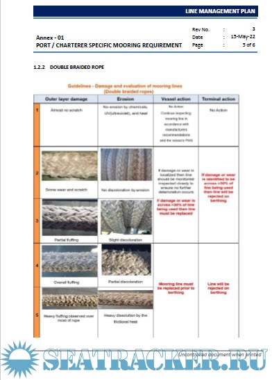 Description: Regulation/guidance mention in this plan for rigging, care, maintenance, inspection and rejection of mooring can be superseded by stringent requirements established by vessel owner, port, trading pattern or manufacturer.