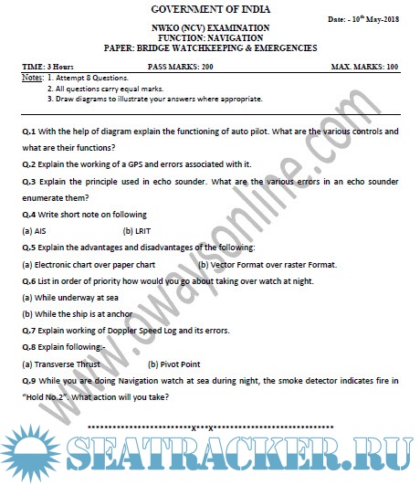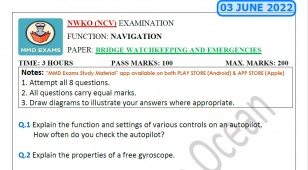 Question Paper Set for Bridge Watchkeeping and Emergencies (June 2022) for NWKO (NCV) Mercantile Marine Department (MMD), India Examinations