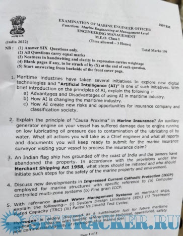 M.E.O. Class I Question Paper for Mercantile Marine Department (MMD), India Exams.