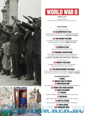 Year: 2021 Language: english Author: Alex Neill (Editor) Genre: Periodical (magazine) Publisher: Historynet, LLC Edition: Vol.35 / No.6 / April ISSN: 0898-4204 Format: PDF Quality: eBook Pages count: 84 Description: World War II magazine covers every aspect of history's greatest modern conflict with vivid, revealing, and evocative writing from top historians and journalists. Each issue provides a lively mix of stories about soldiers, leaders, tactics, weapons, and little-known incidents of the war, including riveting firsthand battle accounts and reviews of books, movies, and video games. And the most authoritative magazine on the war features a striking design that highlights rare, archival photographs and detailed battle maps to convey the drama and excitement of the most famous battles and campaigns. Additional info: HistoryNet LLC is the world’s largest publisher of history magazines.