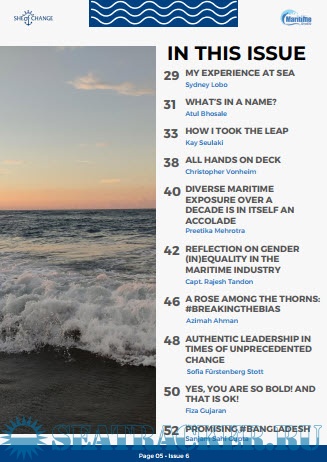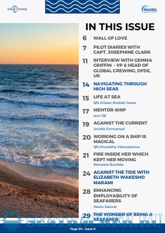 Year: 2022 Language: english Author: Maritime SheEO Genre: Periodical (magazine) Edition: Issue 6 | June Format: PDF Quality: eBook Pages count: 54 Description: The 6th edition of 'She of Change' released on 25th June 2022 which also happens to be The International Day of the Seafarer. In this issue, we have included a section dedicated to our mariners who share their wonderful sea stories and insights on sailing. In addition, we continue our Pilot Diaries series which provides a wonderfully refreshing look at the life of marine pilots and their professional path as they overcome challenges along the way. Additional info: About the Founder: Maritime SheEO is the brainchild of our founder Sanjam. An advocate for Diversity in the Maritime Industry, she is the “go to” person for gender issues in the Indian maritime industry as well as overseas. Passionate about driving change, she launched Maritime SheEO in August 2019.She has been working in the maritime industry since 2001 and is a Director of Sitara Shipping Ltd. A founder member of Women’s International Shipping and Trading Association (WISTA) India, she is also currently Exco member of WISTA International. She’s a member of the Executive Board of Directors of the World Maritime University based in Malmo, Sweden.