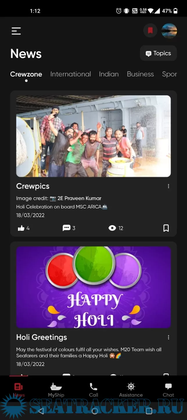 Description: Crewmates is a welfare app developed by the M20 Marine team for the wellbeing of Seafarers and their families. App connects the seafarers around the world with their families, provides the latest news and other updates for Seafarers and link the Seafarers with the various onshore support organizations for safe and stress-free sailing. This app is offered for free and includes the following features.