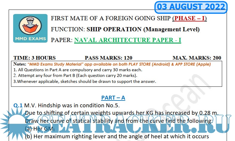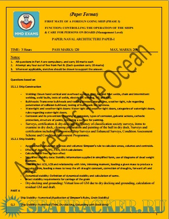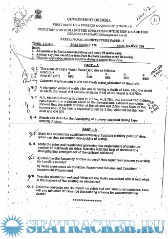 Question Paper Set for Phase I (Chief Mate F.G.) Mercantile Marine Department (MMD), India…