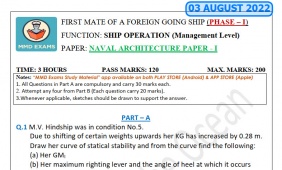 Question Paper Set for Naval Architecture I (August 2022) for Phase I (Chief Mate F.G.) Mercantile Marine Department (MMD), India Examinations