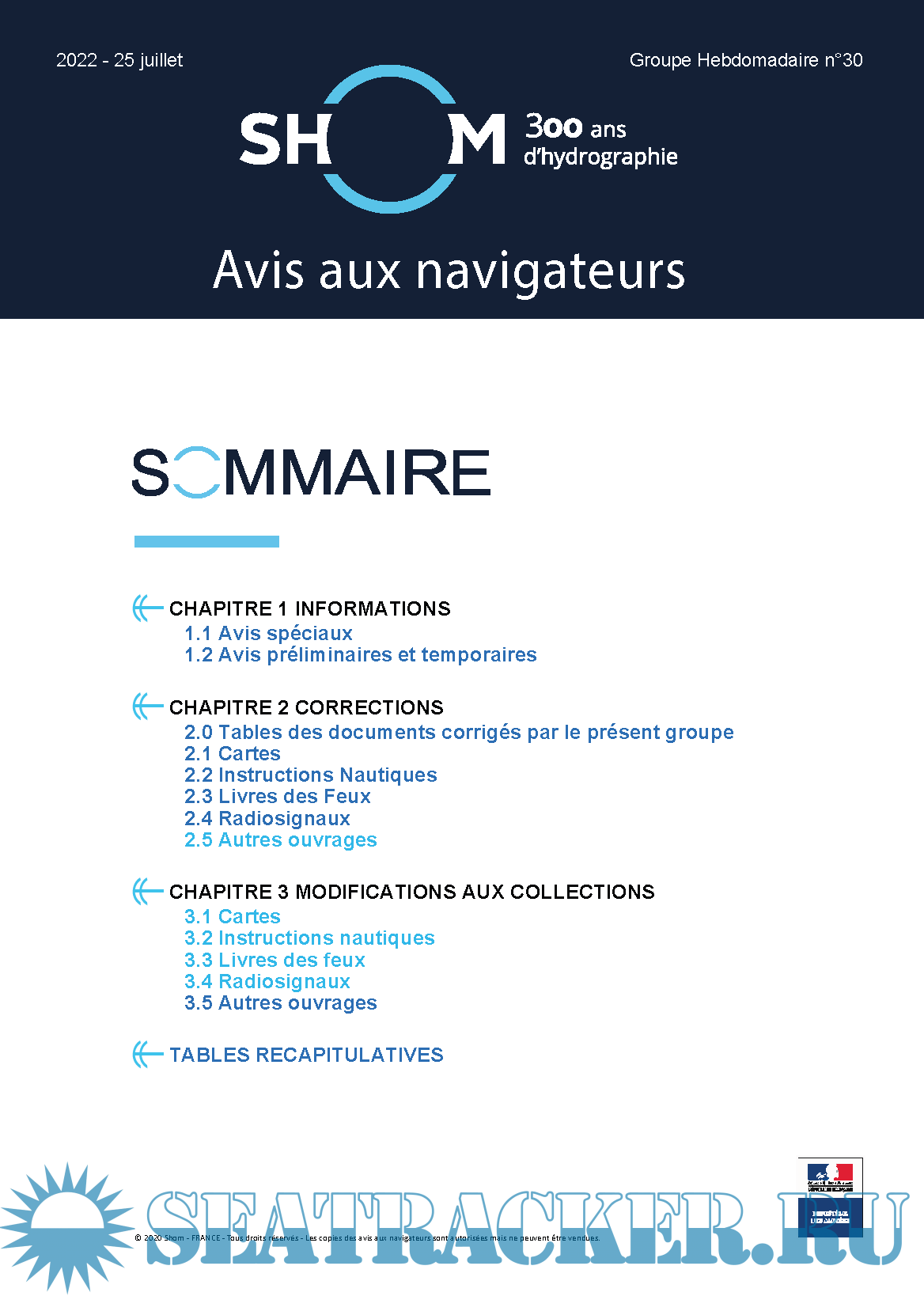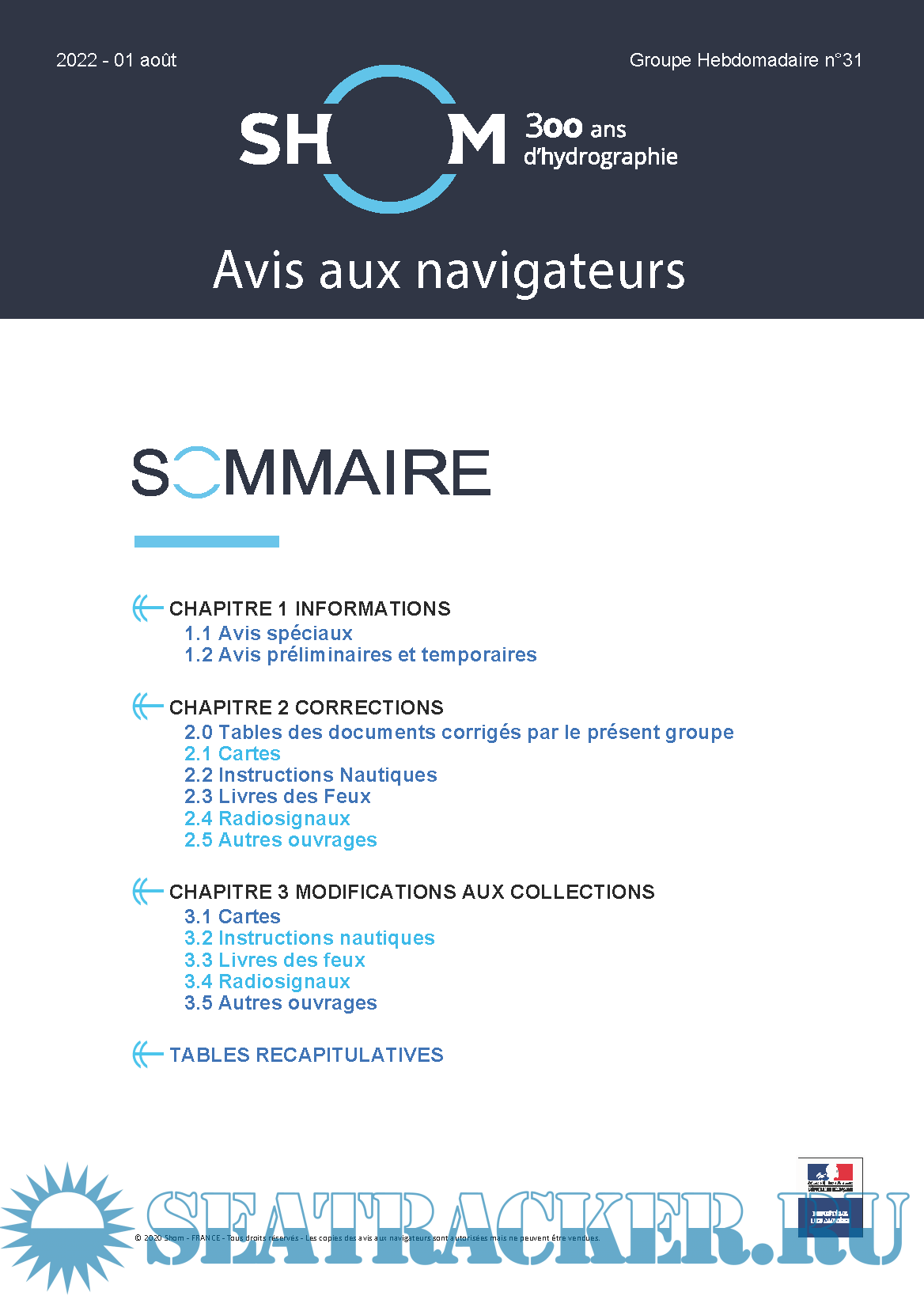 Description: SHOM Notices to Mariners with correct RNC (BSB/kap).