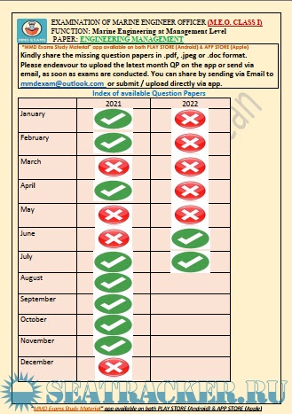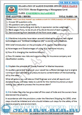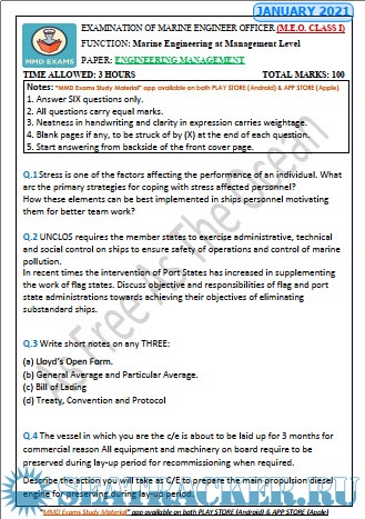 M.E.O. Class I Question Paper for Mercantile Marine Department (MMD), India Exams.