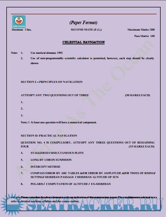 Question Paper Set for Terrestrial and Celestial Navigation (July 2022) for Phase I (Chief Mate…