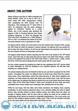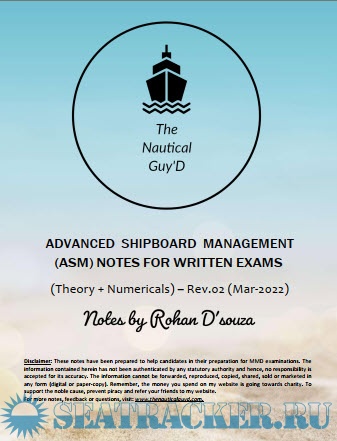 Year: 2022 Language: english Author: Rohan D'souza Publisher: The Nautical Guy'D Edition: Rev. 02 / March Format: PDF Quality: eBook Pages count: 566 Description: Advanced Shipboard Management (ASM) Notes for Written Exams (Theory & Numericals) of M.M.D.(Mercantile Marine Department) - D.G. Shipping, India Additional info: From the Author: In case any of you feel the notes are good and worth it, can get in touch with me if you wish to contribute to charity.