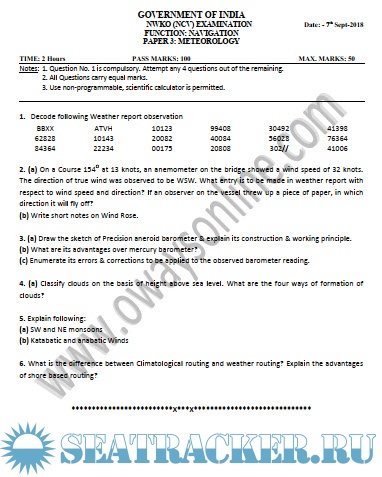 NWKO (NCV) question paper sets for Mercantile Marine Department (MMD), India Exams.