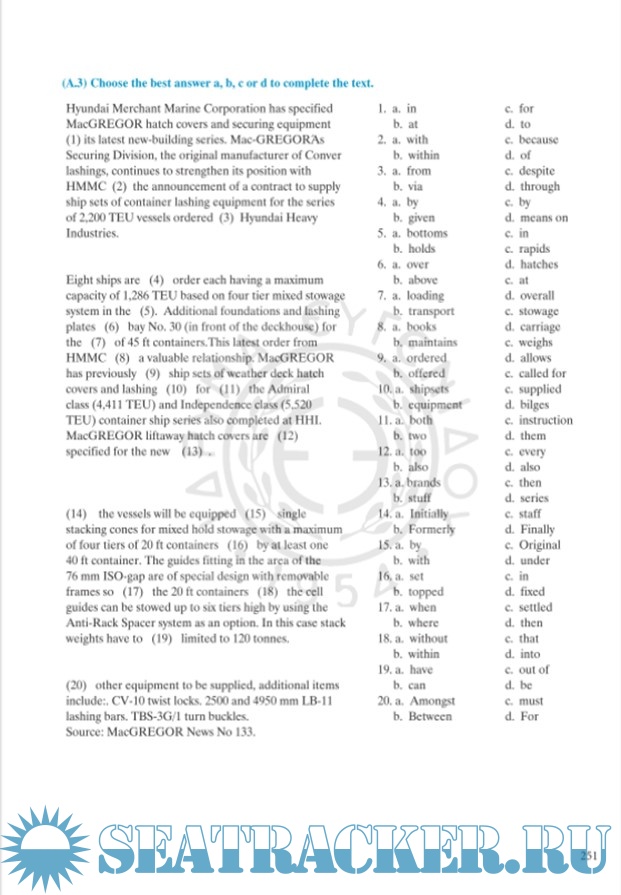 Year: 2005 Language: english Author: Tsonis, Elias P. Genre: Textbook Publisher: Eugenides Foundation Edition: First ISBN: 960-337-065-7 Format: PDF Quality: eBook Pages count: 320 Description: This publication is scheduled to present the grammar phenomena of the English language, while at the same time provide the scientific jargon that is pertinent to deck and engineer cadets of the Merchant Marine Academies, according to the directives for maritime training of the IMO. It has been reviewed by Ms. Jacqueline Bissel-Poliraki (BA, UED, RSA, MA, MSc, Med) of the British Council for the arrangement and presentation of the incorporated exercises in the content. It has been tested in classes, and published by the reputable non-for profit Eugenides Foundation.
