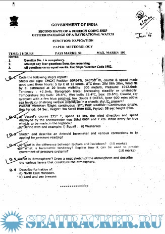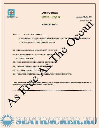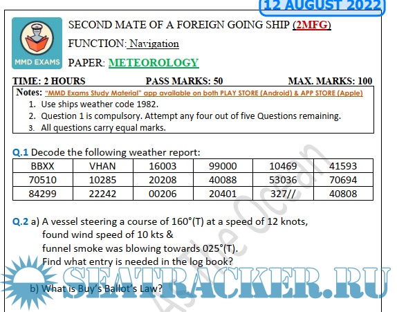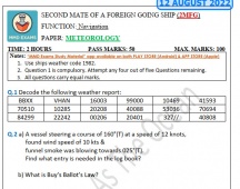 Question Paper Set for Meteorology (August 2022) for Second Mate (F.G.) Mercantile Marine Department (MMD), India Examinations
