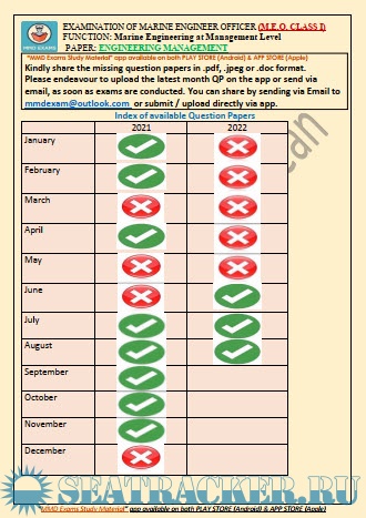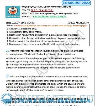 M.E.O. Class I Question Paper for Mercantile Marine Department (MMD), India Exams.