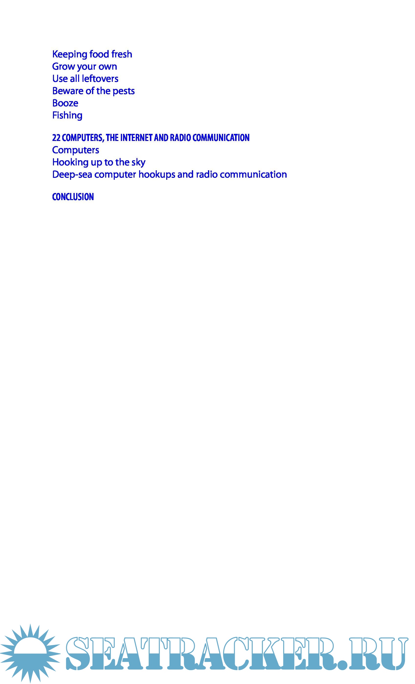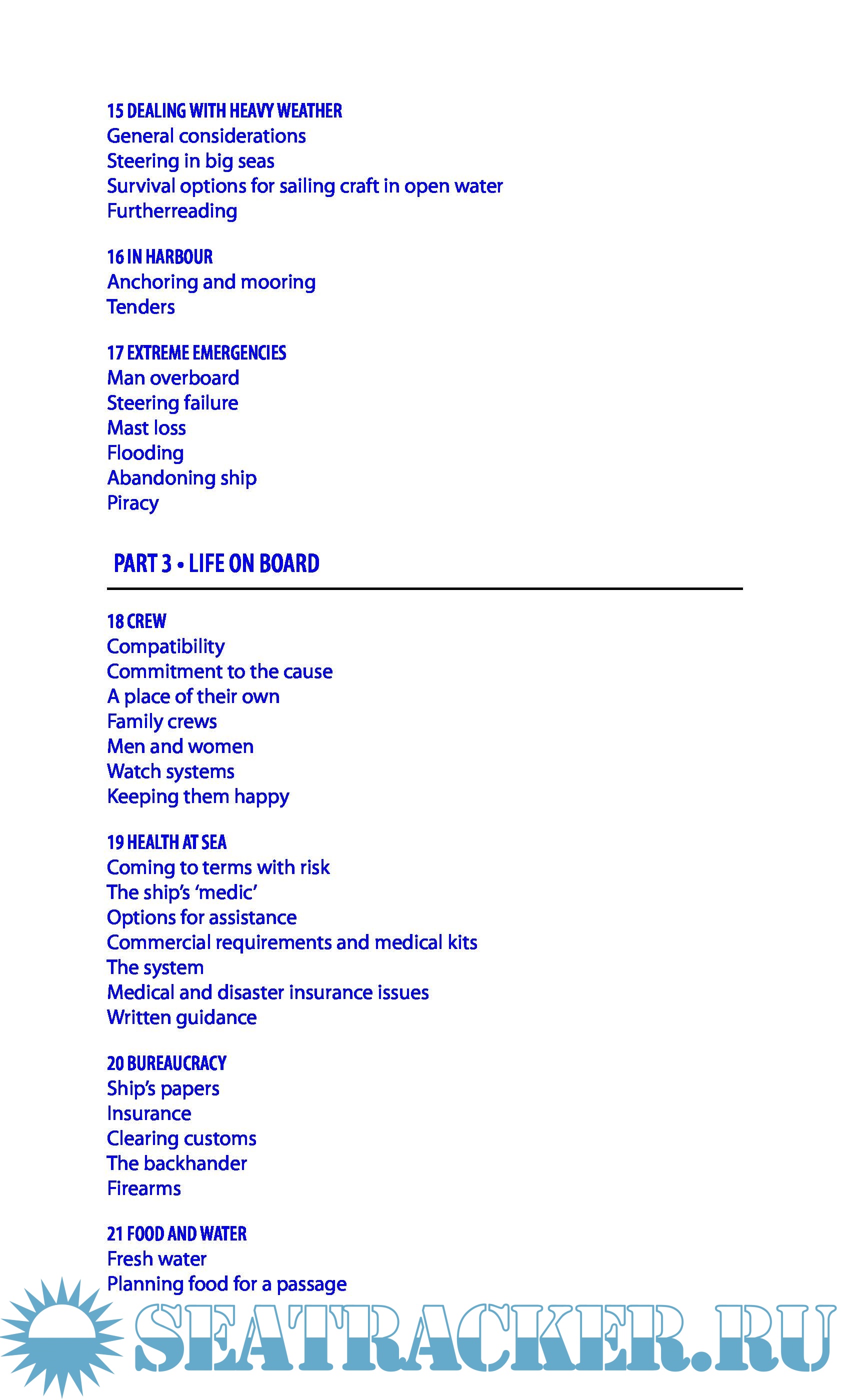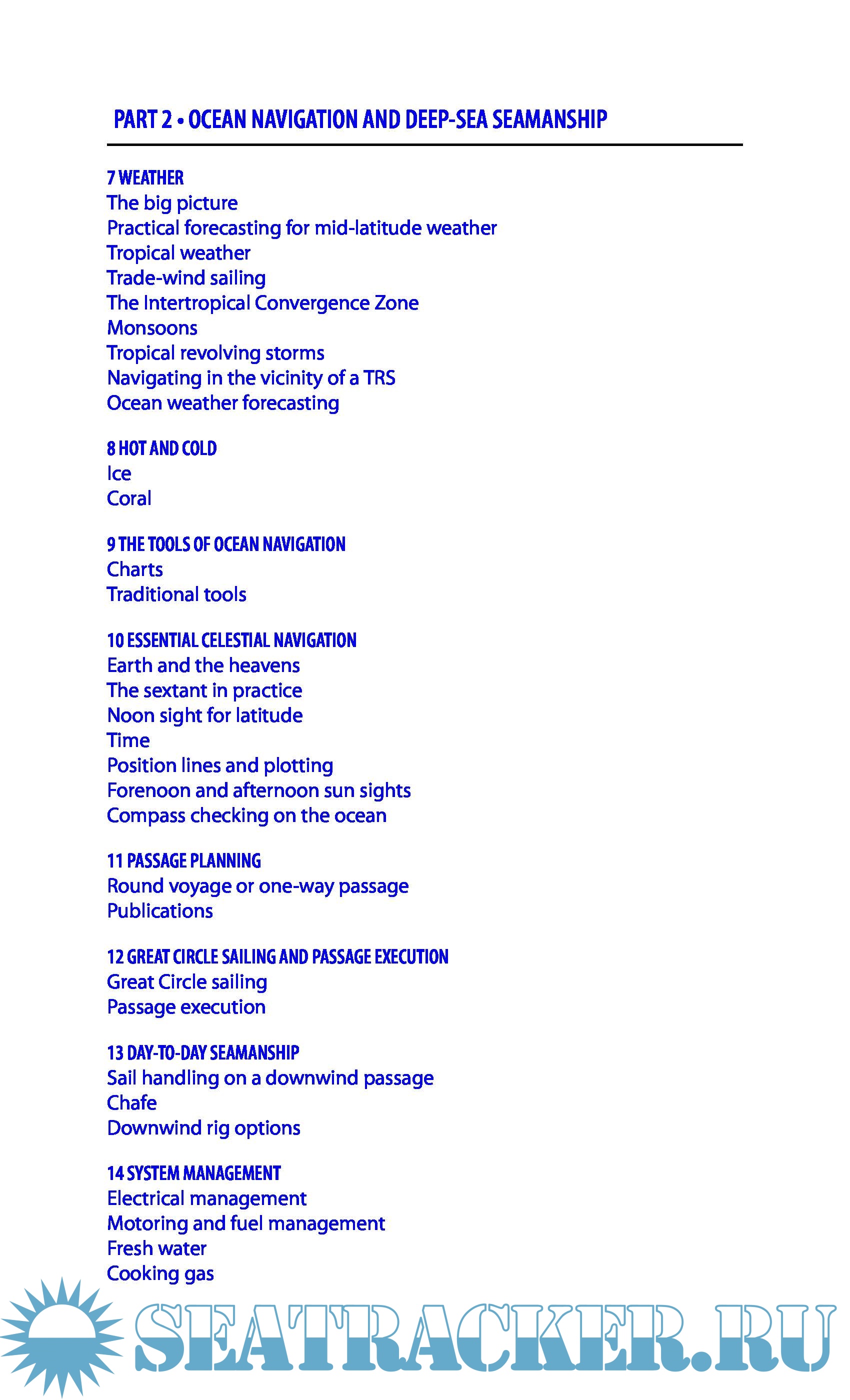 - On passage: ocean weather sys, forecasting, deck routines, watchkeeping, self-steering, emergencies, heavy weather tech