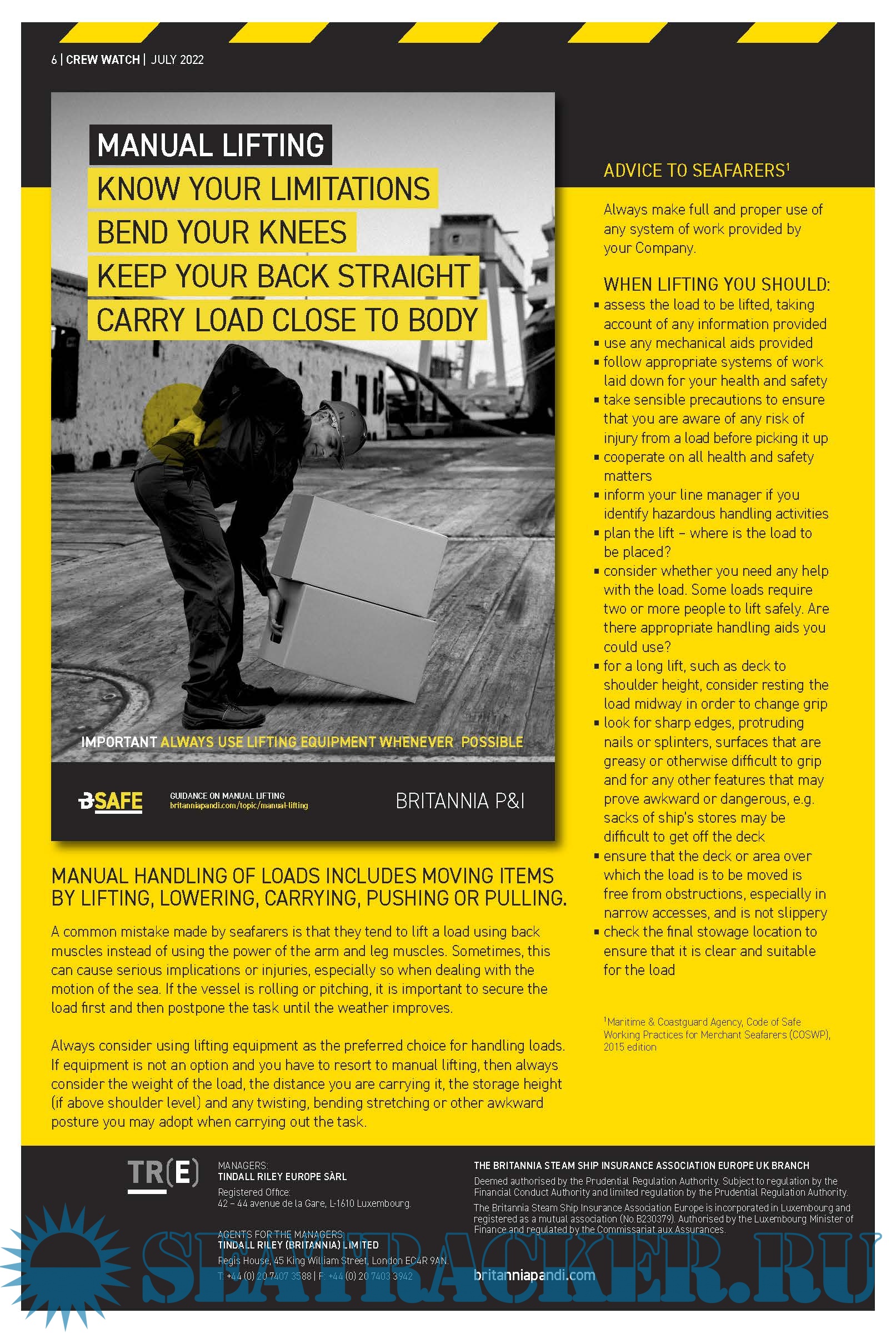 - MANUAL LIFTING ADVICE TO SEAFARERS