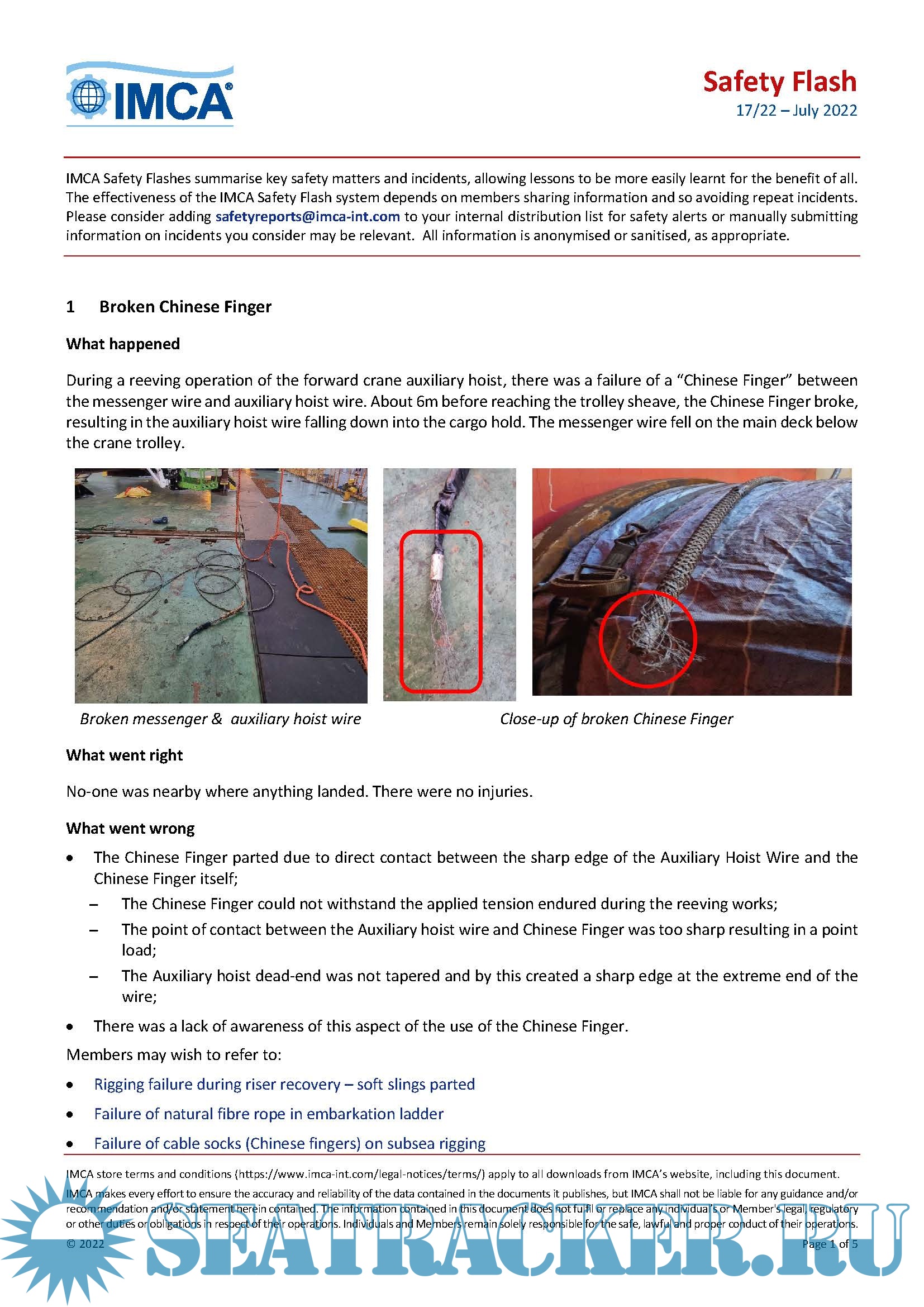 Safety Flash (issue 27/22) - IMCA [2022, PDF]
