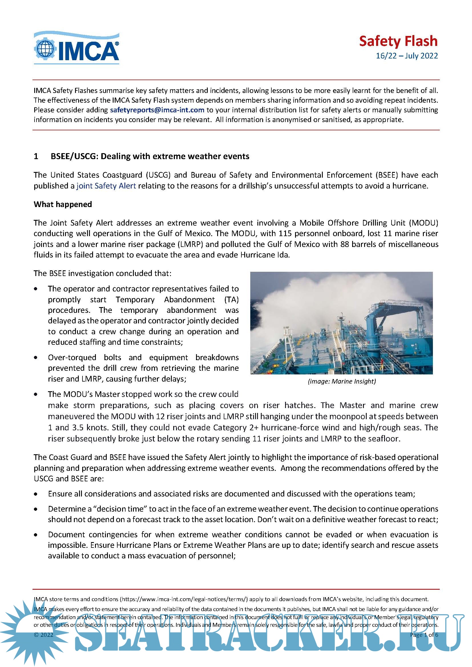 Safety Flash issue 16/22 - IMCA [2022, PDF]