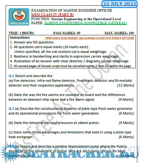 Question Paper (updated March 2023) for M.E.O. Class IV Examinations, India - D.G. Shipping, India…