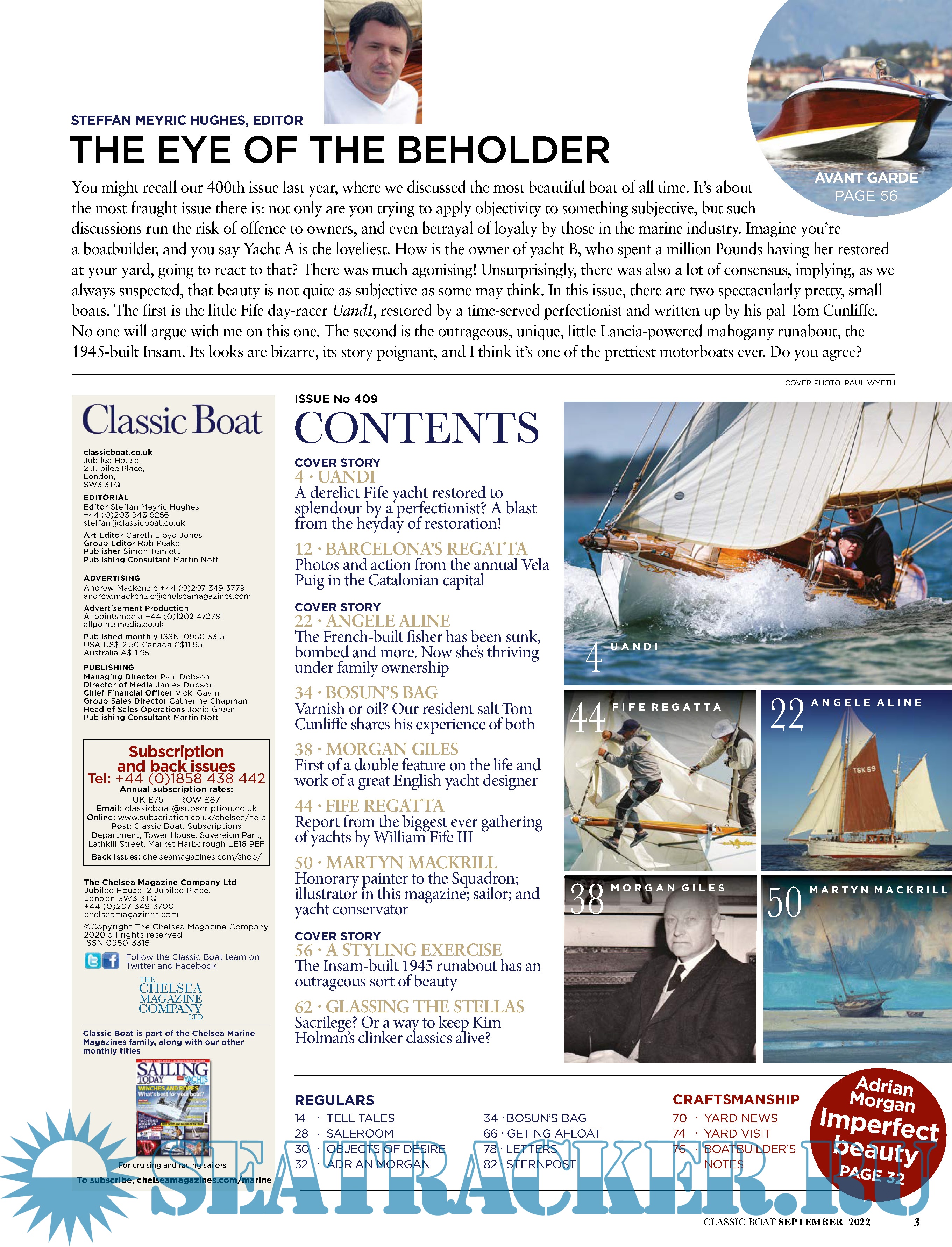 Year: 2022 Language: english Author: Rob Peake Editor Genre: Periodical (magazine) Publisher: The Chelsea Magazine Company Ltd Format: PDF Quality: eBook Pages count: 84 Description: Classic Boat is the magazine for the world’s most beautiful boats. Packed with stunning images, we have the inside stories of the great classic yachts and motorboats afloat today, as well as fascinating tales from yesteryear and the latest from the wooden boat building scene around the world. The September issue of Classic Boat is out now and on our cover this month we have a Fife dayboat, UandI, restored by a time-served perfectionist Alastair Garland and written up by his pal Tom Cunliffe. A boat to stop traffic!