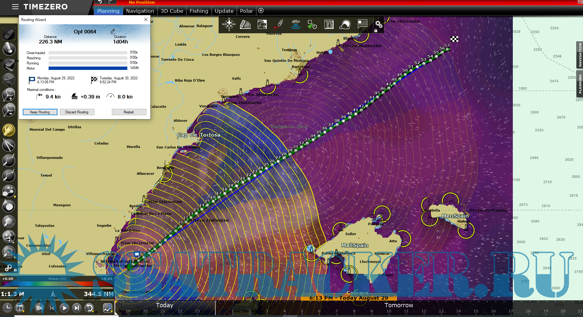 Advanced route planning (optimization of the departure time according to tidal currents)