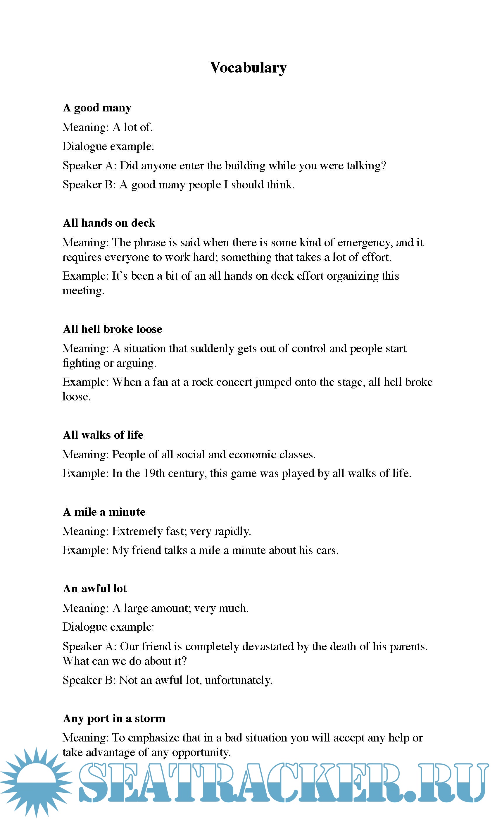 In this book collected useful English idioms, sayings, and phrases you should know to write and speak like a well-educated native speaker.