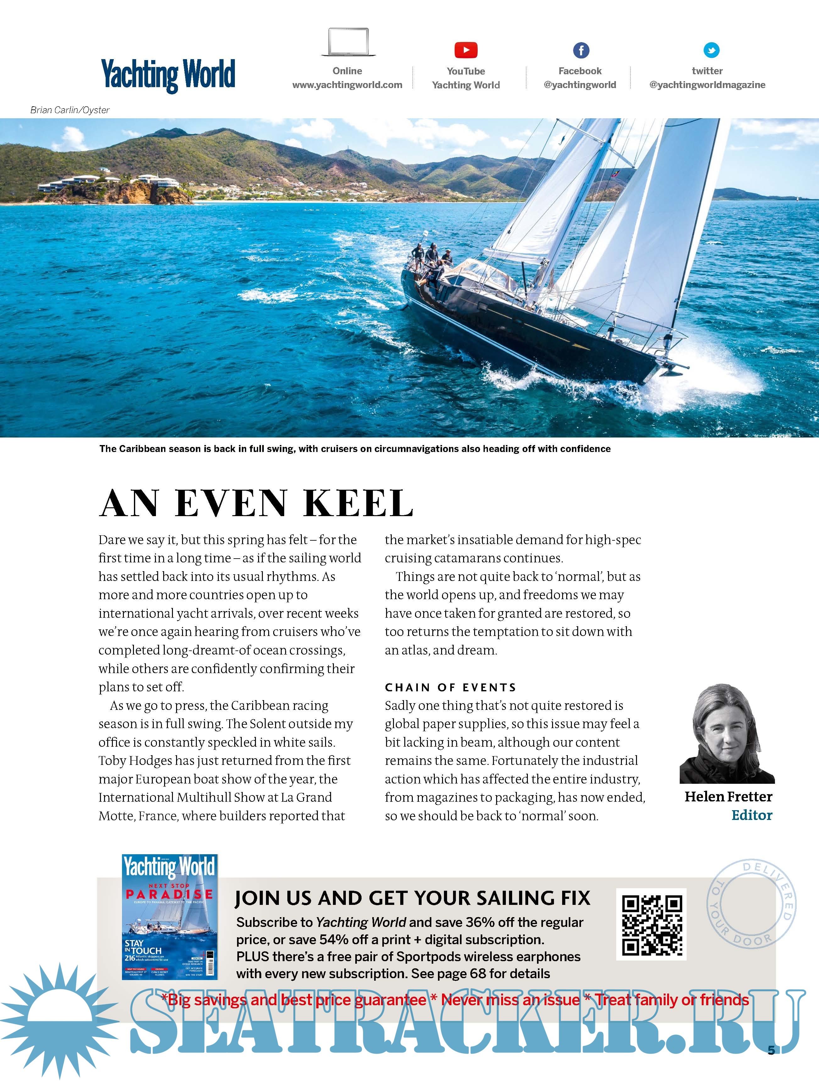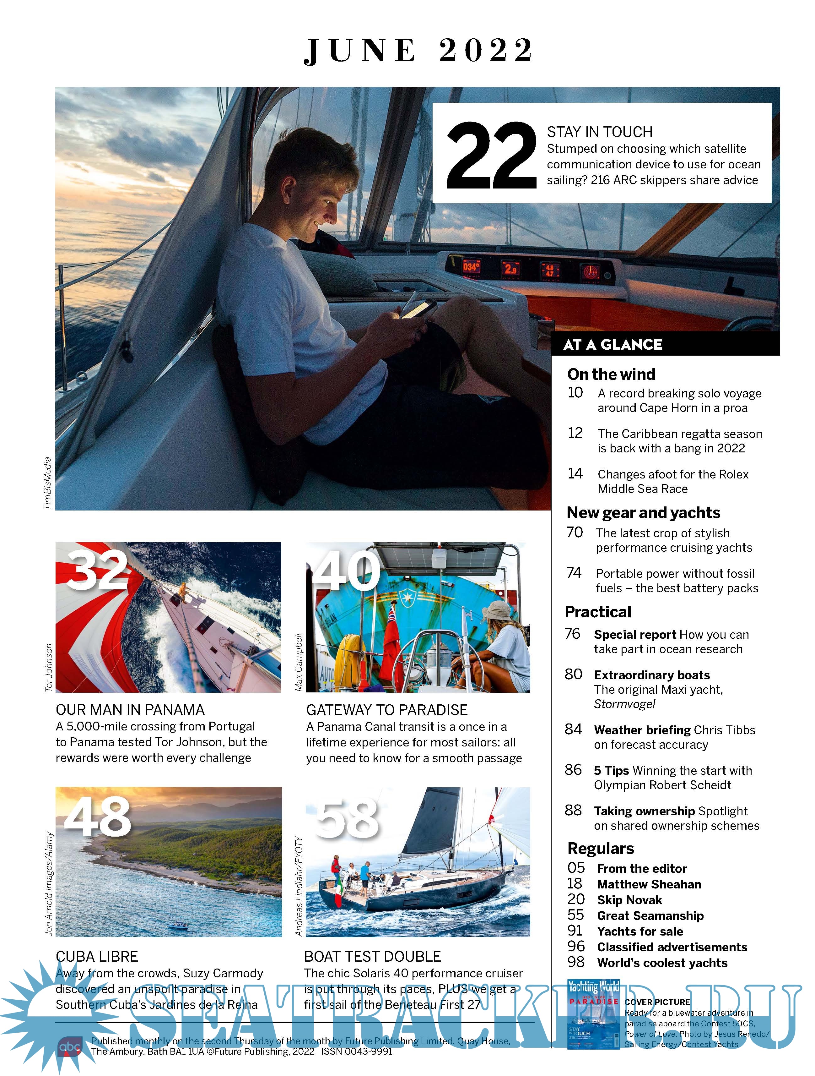 Year: 2022 Language: english Author: Helen Fretter Editor Genre: Periodical (magazine) Publisher: Future Publishing Limited Quay House Edition: June 2022 Format: PDF Quality: Photo of pages Pages count: 100 Description: Yachting World has had its finger on the pulse of sailing since 1894 (though some of us joined a little more recently). We reckon we are the most enthusiastic sailing fans in the world: we love boats of all kinds, modern and classic, we like racing and cruising, are fascinated by innovation yet revere tradition, and nothing that floats is too big or too small for our tastes.