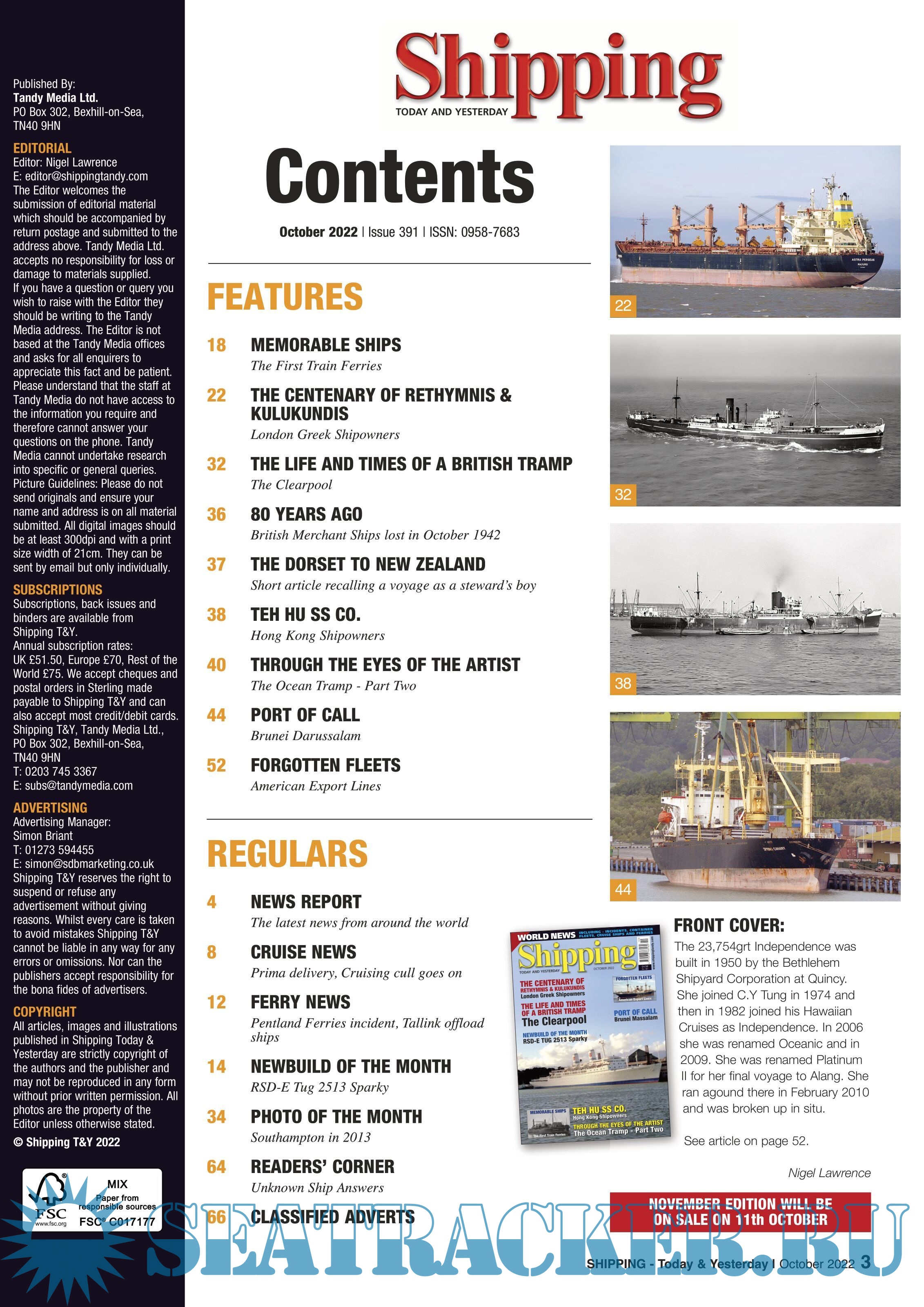 Shipping Today & Yesterday Magazine No.390 September 2022 - Nigel Lawrence (Editor) [2022, PDF]