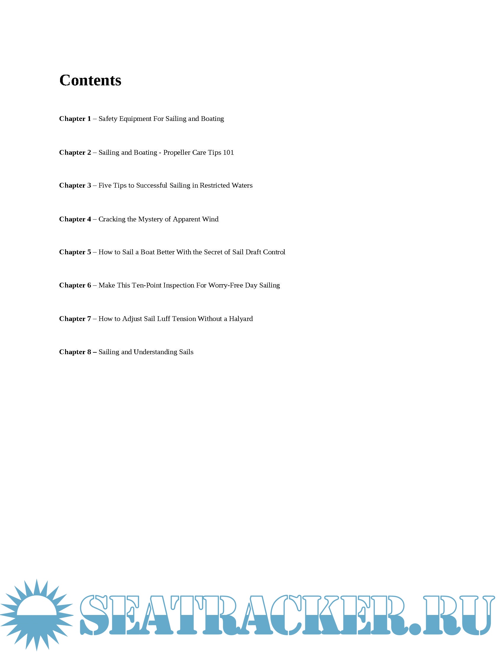Description: If you are anything like me, you are anxious to get away from the dock and go out for a day’s sail and learn how to sail a boat even better than before. But wait, you might be forgetting the most important part of sailing: Preparation. How many times have you been out sailing and the luff on your mainsail or headsail begins to sag, or show scallops after the breeze picks up? This often means a trip to the mast to tension the halyard. But did you know you can do this without a halyard? Before you even think of casting off, you need to make sure that you go through these basic checklists in this book.