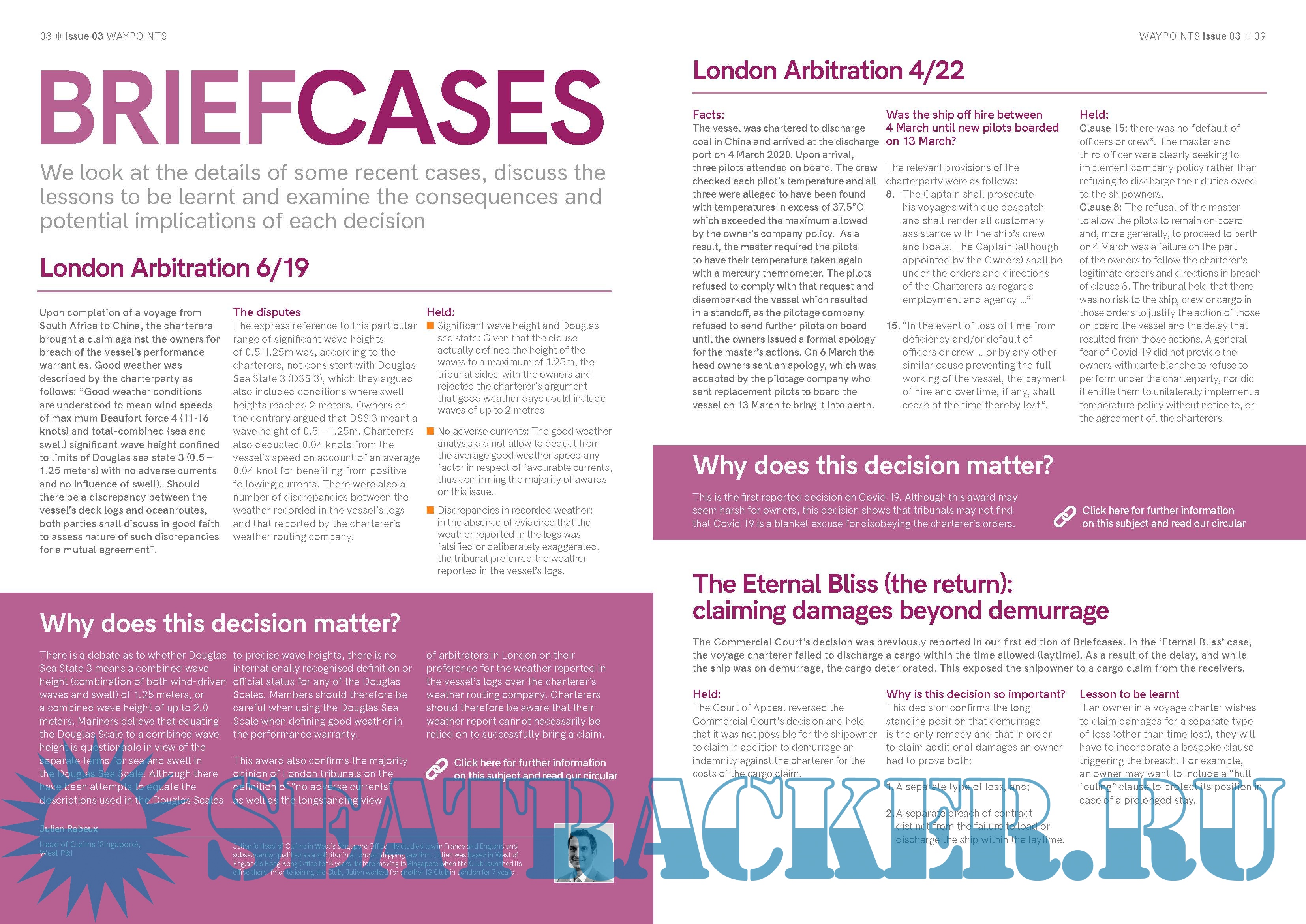The third issue of Waypoints magazine takes a look at the relationship between shipowner and charterer, and honing in on matters such as Salvage and General Average through to War Risk. We have outlined recent arbitration cases that discuss the lessons to be learnt and examine the consequences and potential implications of each decision to a Charterer.