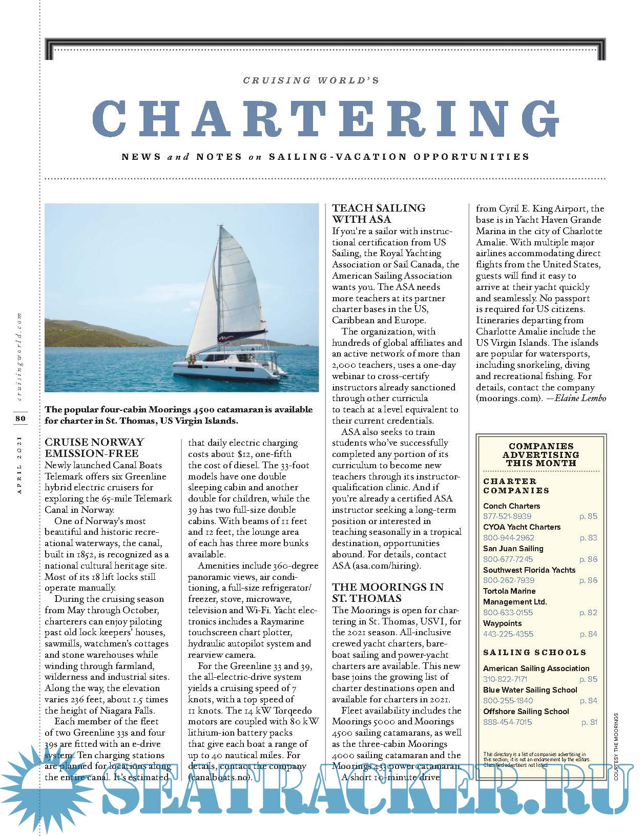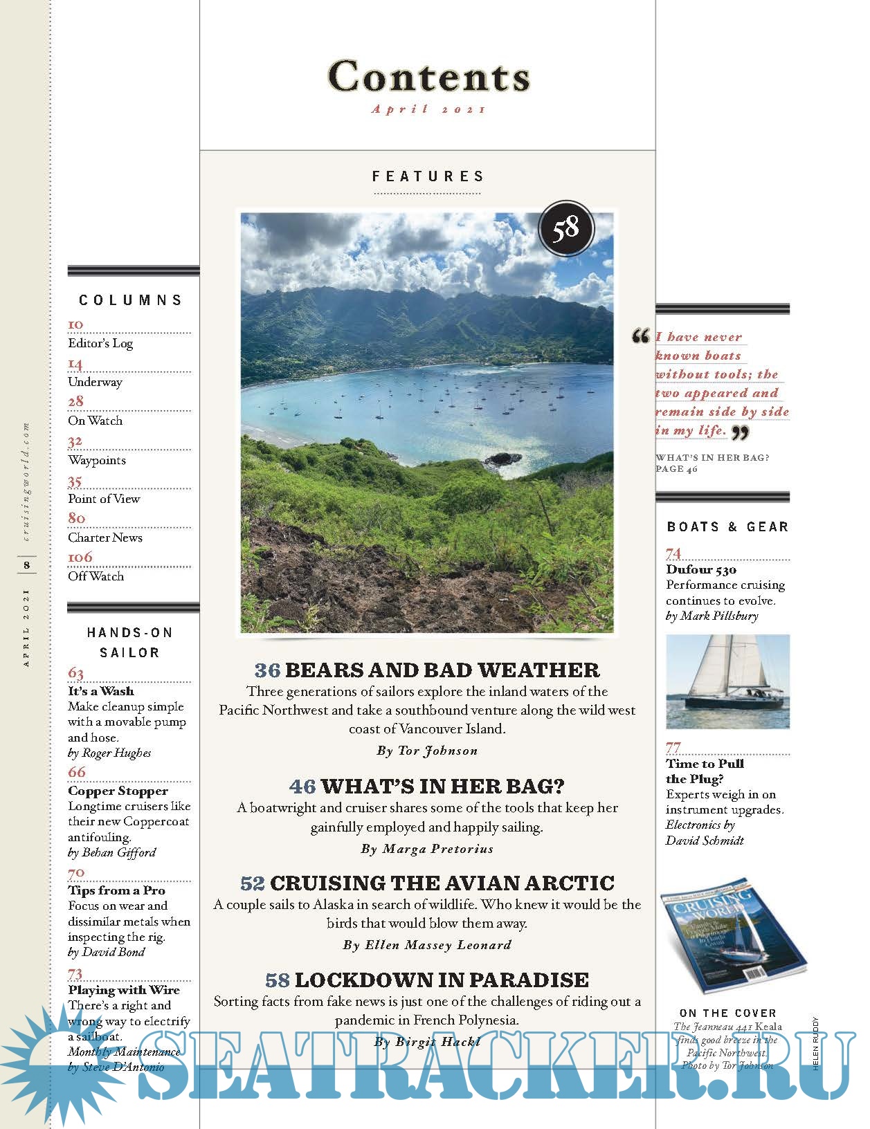 Year: 2021 Language: english Author: Editor Mark Pillsbury Genre: Periodical (magazine) Publisher: A Bonnier Corporation Company Edition: April 2021 Format: PDF Quality: Photo of pages Pages count: 138 Description: Cruising World is your passport for exploring the world's coastlines and oceans while voyaging under sail. Its contributors inspire and entertain through stories, pictures and videos that underscore the beauty and adventure of sailing, while providing instruction on the disciplines of seamanship, navigation and boat handling.
