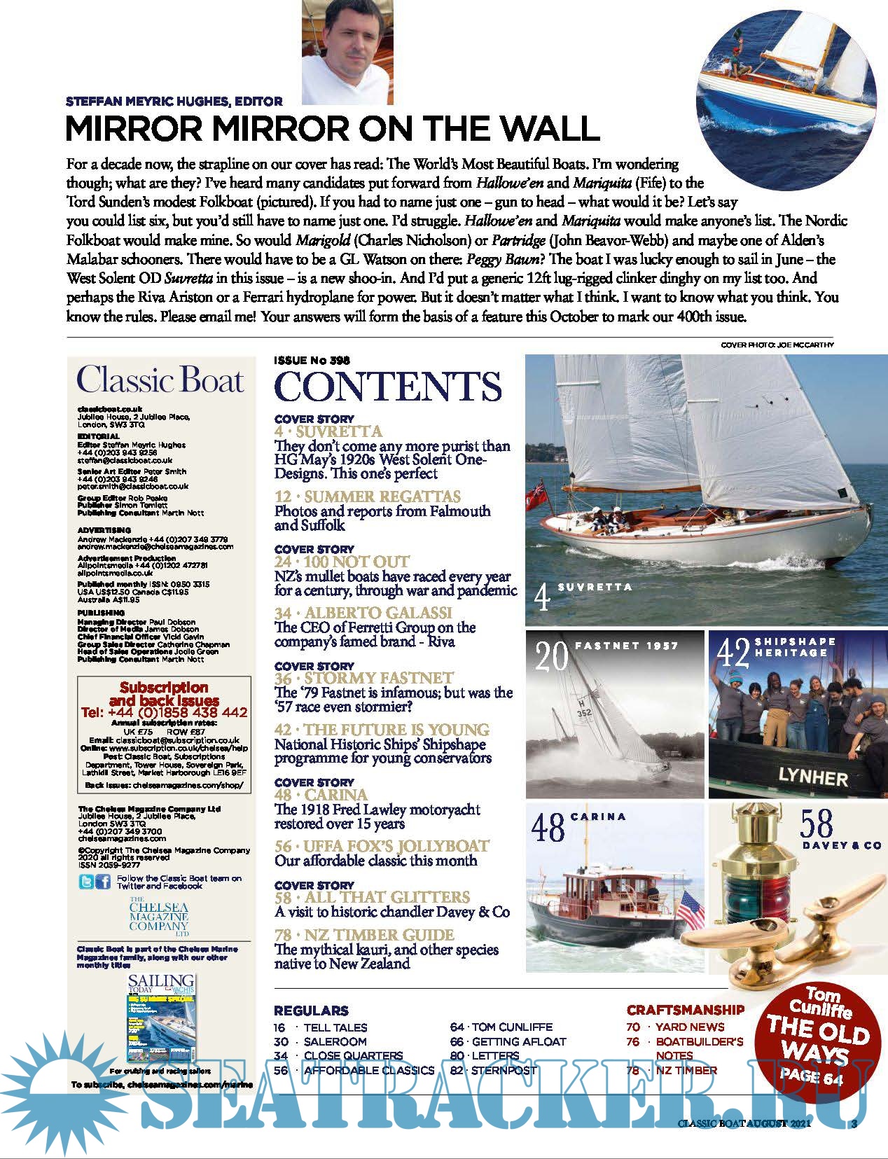 Description: Classic Boat is the magazine for the world’s most beautiful boats. Packed with stunning images, we have the inside stories of the great classic yachts and motorboats afloat today, as well as fascinating tales from yesteryear and the latest from the wooden boat building scene around the world.