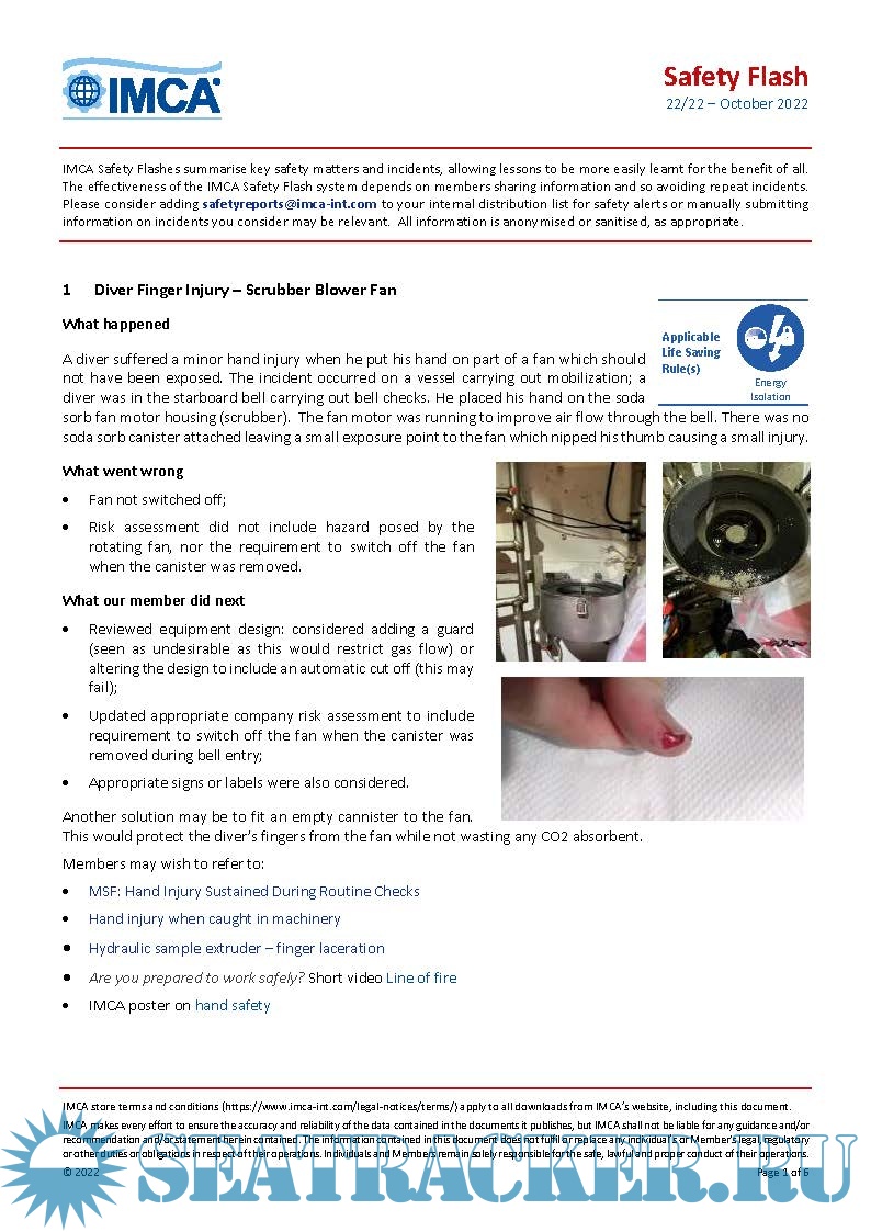 Safety Flash (issue 27/22) - IMCA [2022, PDF]